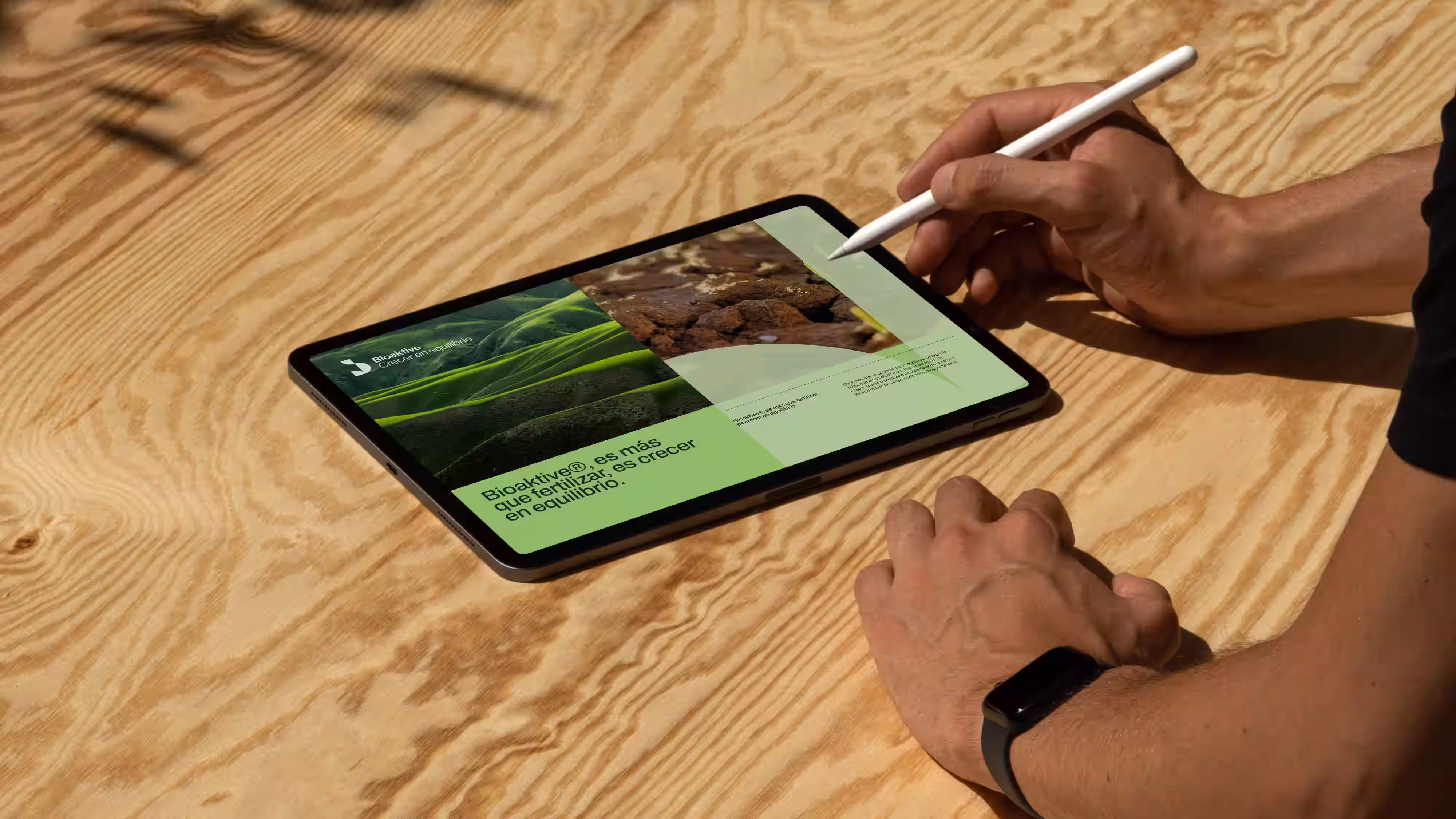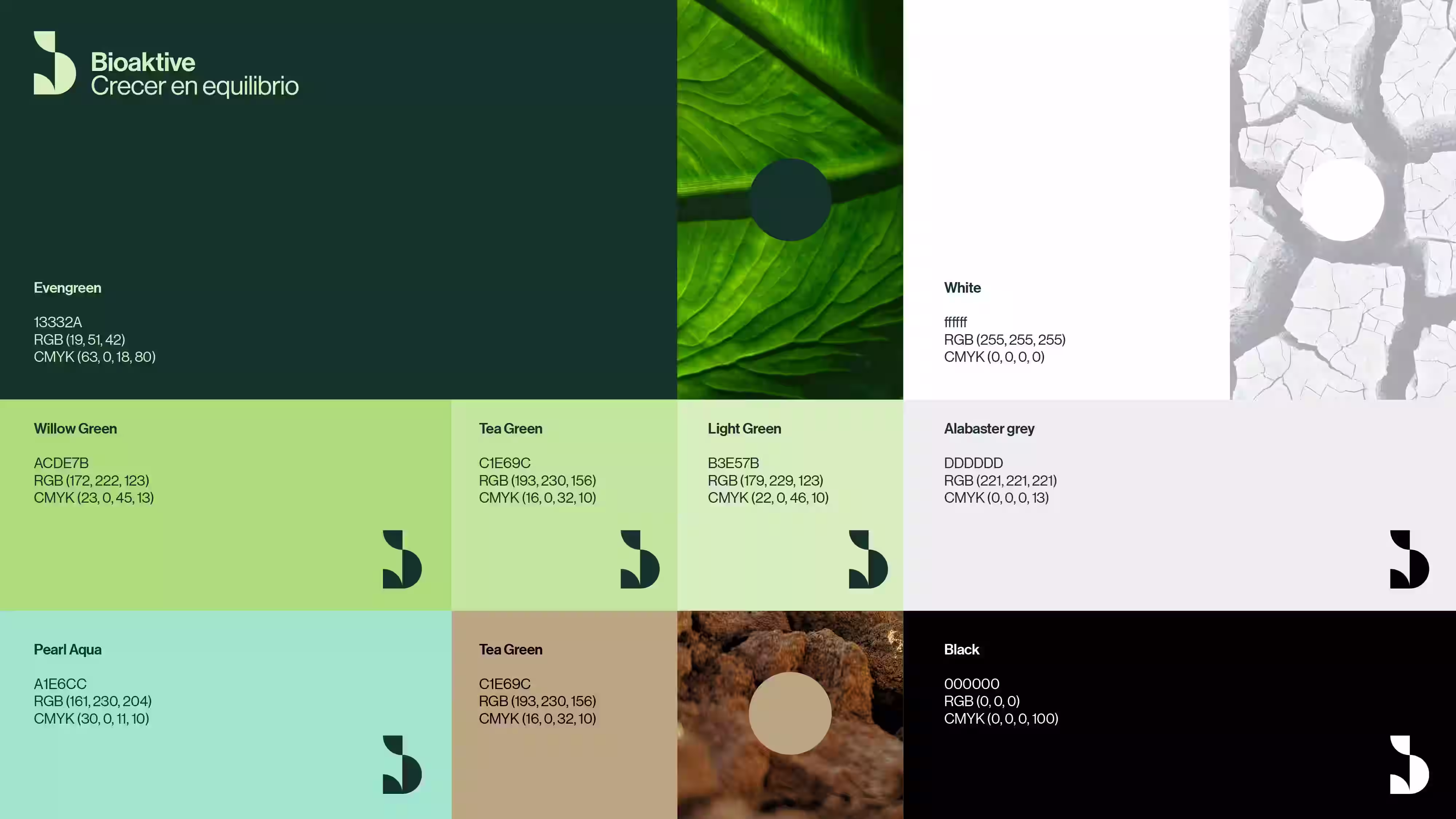 Desarrollamos una identidad visual basada en un sistema geométrico y modular que pone a Bioaktive en el centro como fuerza activa del ecosistema. La paleta cromática se construyó a partir de elementos esenciales del suelo —minerales, materia orgánica y luz— y se combinó con texturas y contrastes que evocan investigación, inteligencia y una relación directa con la tierra. El logotipo fue diseñado para ser liviano, flexible y adaptable. Una identidad que acompaña el crecimiento sin forzarlo, que potencia lo vivo y que comunica una idea clara: Bioaktive no es solo fertilizar, es crecer en equilibrio.We developed a visual identity based on a geometric and modular system that places Bioaktive at the center as an active force within the ecosystem. The color palette was built from essential elements of the soil—minerals, organic matter, and light—and combined with textures and contrasts that evoke research, intelligence, and a direct relationship with the land. The logotype was designed to be light, flexible, and adaptable. An identity that supports growth without forcing it, enhances what is alive, and communicates a clear idea: Bioaktive is not just about fertilizing—it is about growing in balance.