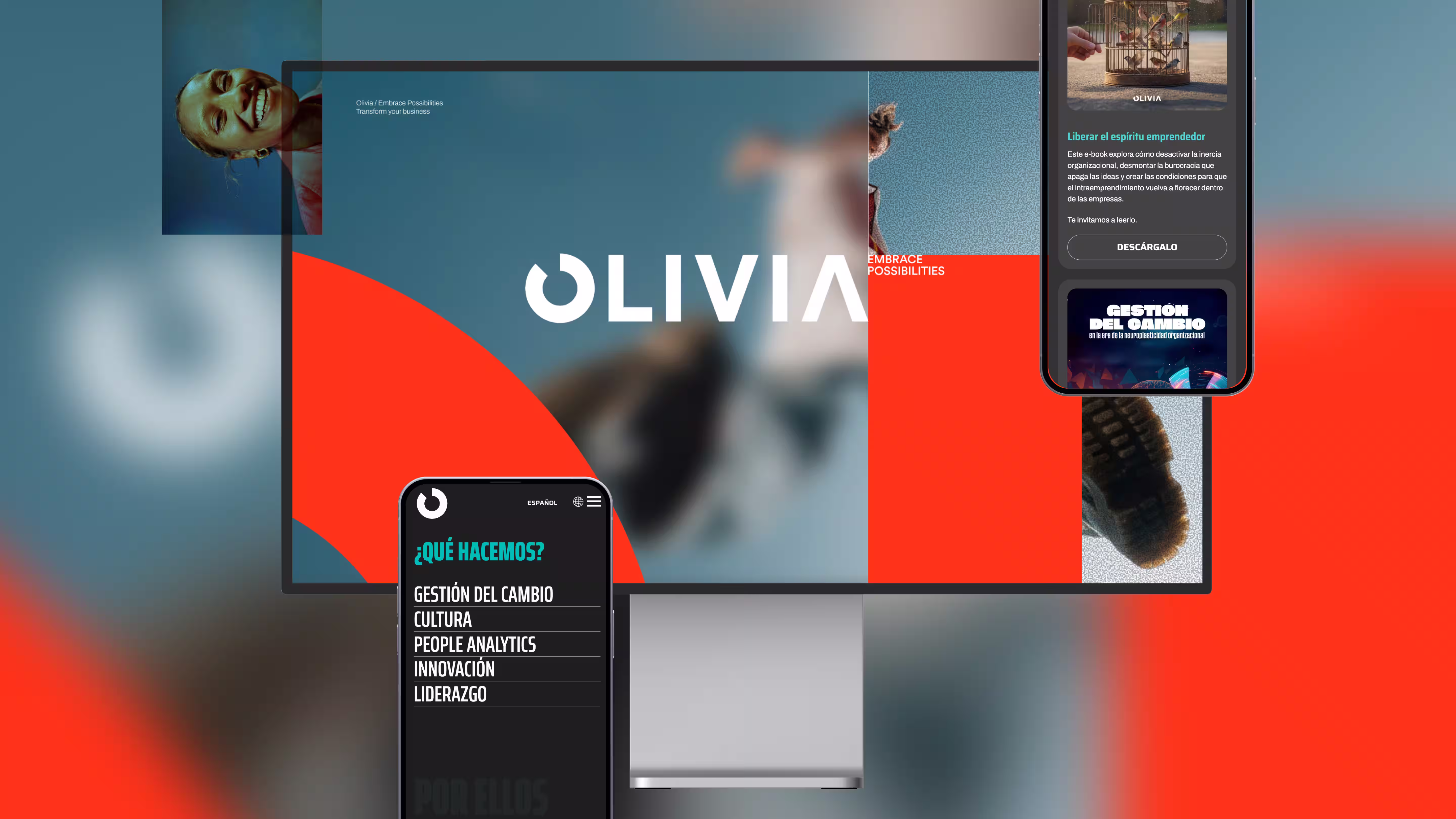 Rebranding integral y expansión digital. Olivia nos convocó para llevar adelante un rebranding completo que acompañara la evolución de la consultora. El proyecto incluyó la actualización del logotipo, el desarrollo de un nuevo sistema de identidad visual y la creación de recursos gráficos para unificar y fortalecer su comunicación. Como parte del proceso, se rediseñó íntegramente el sitio web, incorporando una narrativa más contemporánea, una experiencia de usuario clara y una estructura alineada con el crecimiento de la marca.Comprehensive rebranding and digital expansion. Olivia approached us to lead a full rebranding process aligned with the consultancy's growth. The project included the evolution of the logo, the creation of a new visual identity system, and the development of graphic assets to unify and strengthen brand communication. As part of this process, the website was completely redesigned, incorporating a more contemporary narrative, a clear user experience, and a structure that reflects the brand's evolution.
