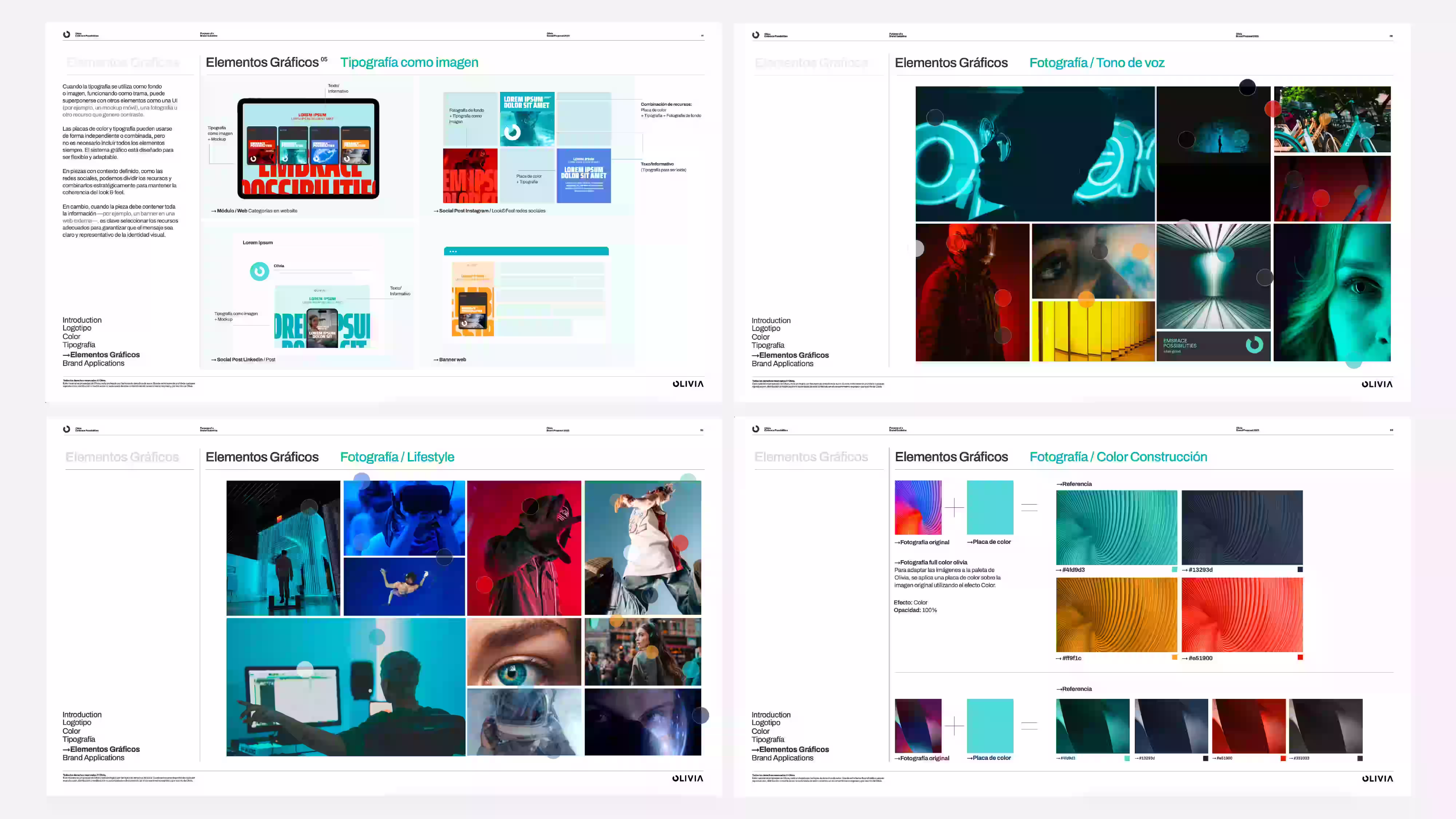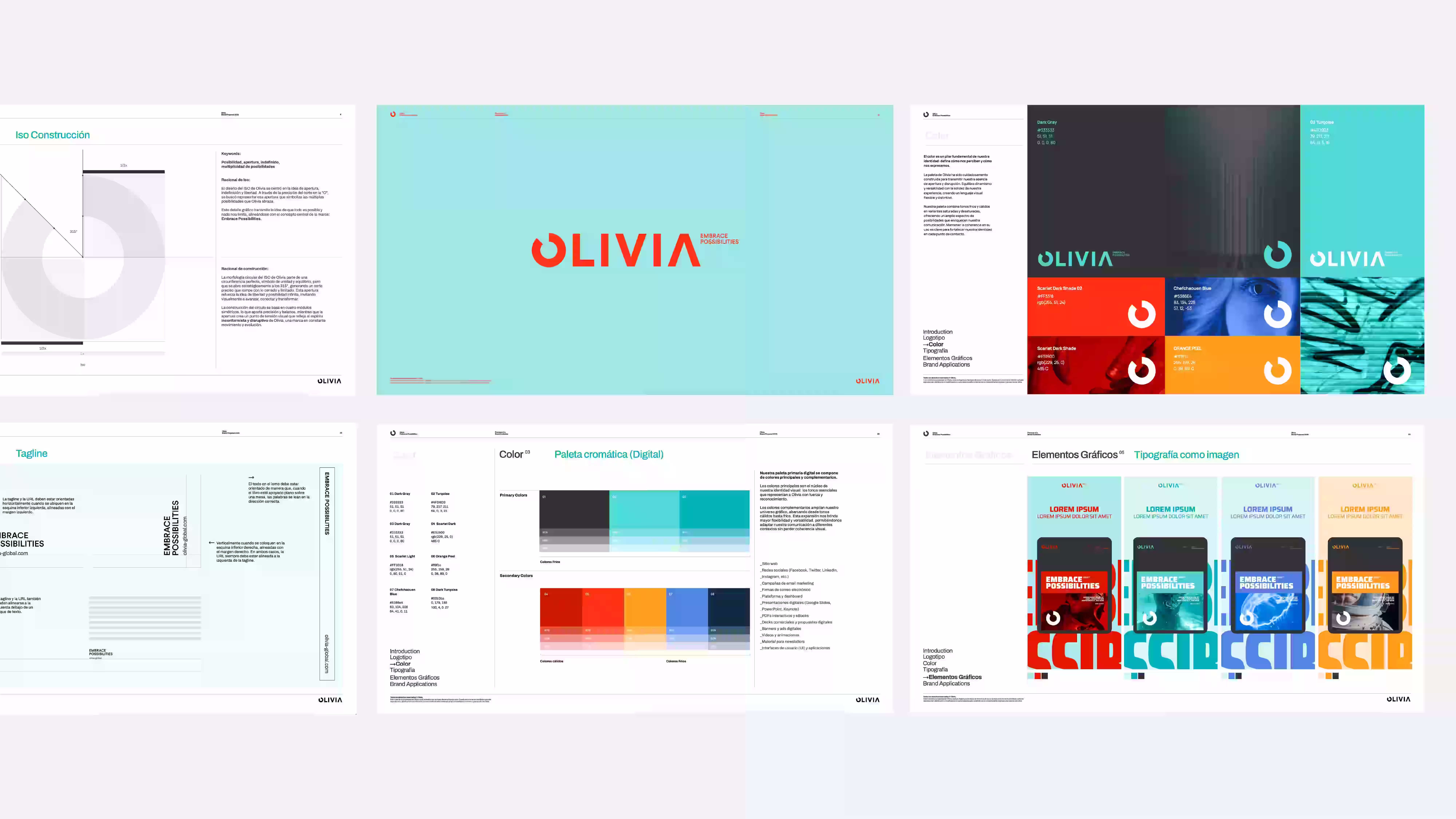 Desarrollamos un rebranding completo que sienta las bases del universo visual de Olivia y habilita el crecimiento de futuras submarcas. Definimos un sistema de identidad flexible y coherente, capaz de acompañar distintos escenarios de comunicación. Trabajamos junto al equipo de Olivia en el diseño y desarrollo de un nuevo sitio web, alineado a los lineamientos del brand guideline. Finalmente, acompañamos el lanzamiento del nuevo posicionamiento desarrollando todas las piezas necesarias para su implementación, asegurando consistencia y claridad en el despliegue de la nueva identidad.We delivered a complete rebranding that establishes the foundations of Olivia's visual universe and enables the development of future sub-brands. A flexible and coherent identity system was designed to support diverse communication needs. We worked closely with the Olivia team to design and develop a new website aligned with the brand guidelines. Finally, we supported the brand launch by developing all the necessary assets for the new identity rollout, ensuring consistency and clarity throughout the implementation.